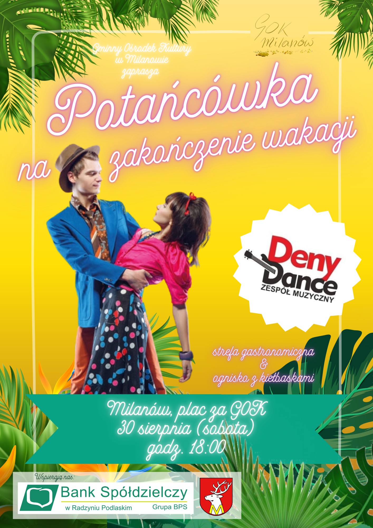 Gminny Ośrodek Kultury w Milanowie zaprasza na „Potańcówkę na zakończenie wakacji”. Początek o godzinie 18.00.