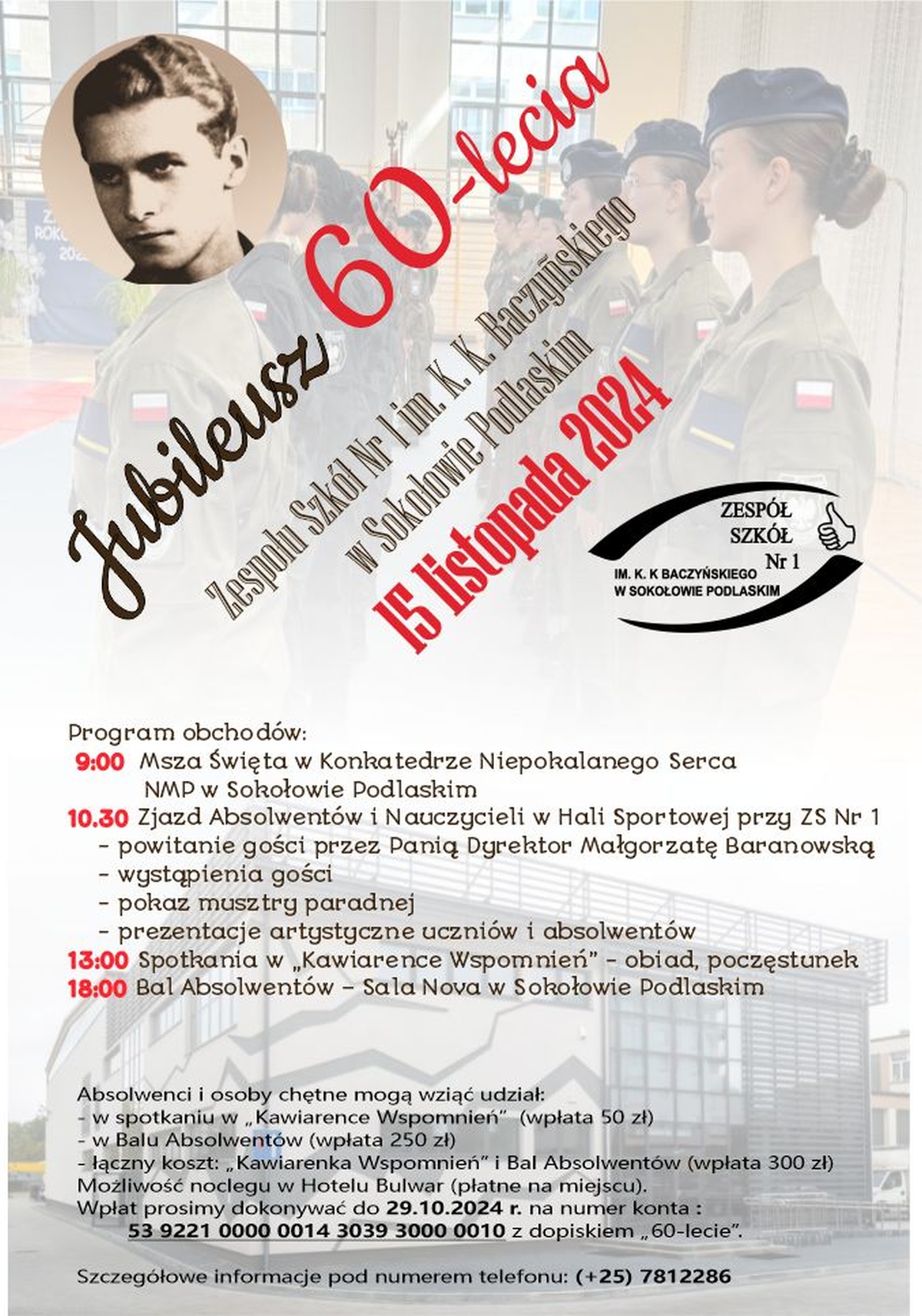 Zespół Szkół nr 1 w Sokołowie Podlaskim będzie świętował 15 listopada 60-lecie swojego istnienia. Z racji jubileuszu organizowany jest Zjazd Absolwentów i Nauczycieli.