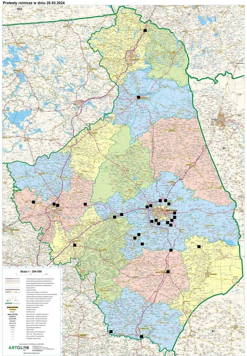 Blokada węzła S61/E67 w obu kierunkach w m. Słobódka od 20.03.2024 o godz. 07.00 do 21.03.2024 do godz. 19.00. Miejsce blokady będzie w pobliżu byłego przejścia granicznego z LITWĄ w Budzisku. Na w/w węźle ustawione będą traktory oraz różne inne pojazdy uczestników zgromadzenia, uniemożliwiając przejazd głównym ciągiem drogi ekspresowej. Cały ruch przekierowany będzie na zjazdy-ronda, biegnące po obu stronach drogi głównej. Akcja ma trwać początkowo 36 godzin, a w kolejnych dniach tj. w dniach 22 – 28.03.2024 r., (7 dni) oraz w dniach 2 – 20.04.2024 r., (19 dni) w godz. 7.00 – 19.00.