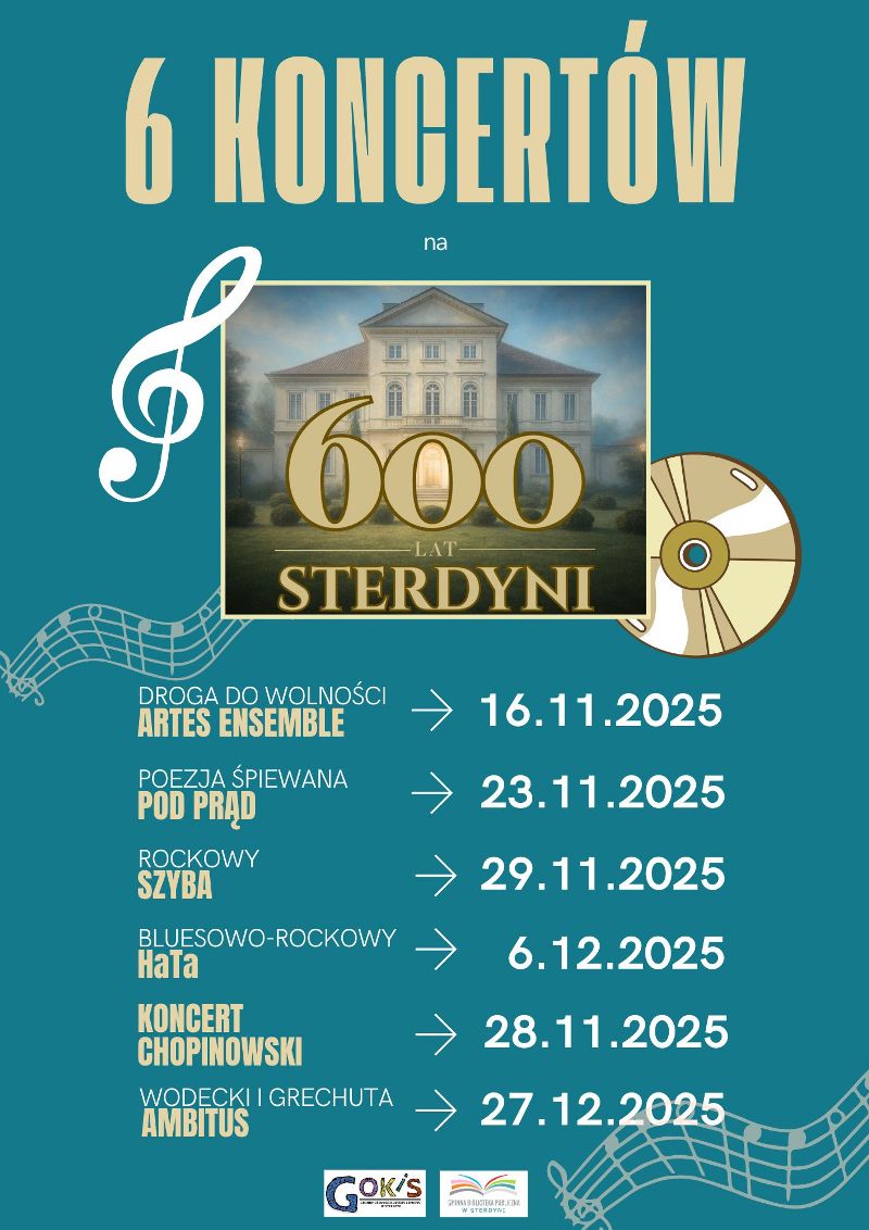 Z okazji jubileuszu przygotowano również cykl wydarzeń artystycznych pod hasłem „6 koncertów na 600-lecie Sterdyni”. W kolejnych tygodniach w GOKiS wystąpią m.in.: