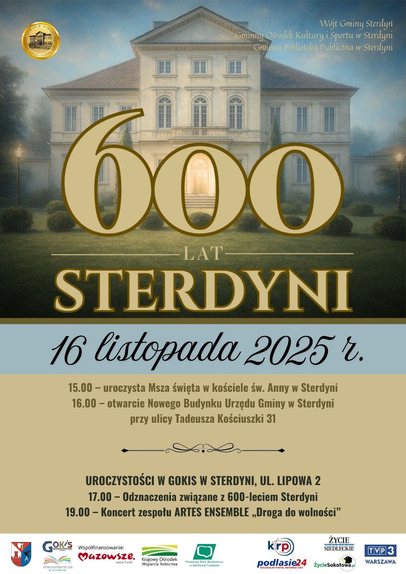 16 listopada w Sterdyni odbędą się główne uroczystości z okazji 600-lecia gminy Sterdyń. To wyjątkowe wydarzenie połączy elementy religijne, samorządowe i kulturalne. Jednym z punktów jubileuszowych obchodów, którym patronuje Katolickie Radio Podlasie oraz portal Podlasie24, będzie otwarcie nowego budynku Urzędu Gminy.