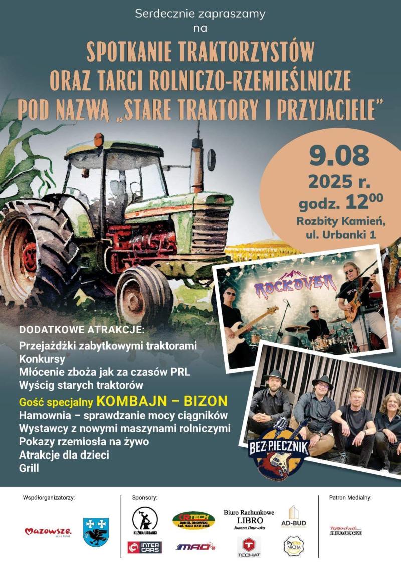 W Rozbitym Kamieniu, w gminie Bielany, odbędzie się Spotkanie Traktorzystów oraz Targi Rolniczo-Rzemieślnicze „Stare Traktory i Przyjaciele” – wyjątkowa atrakcja dla miłośników rolnictwa, zabytkowych maszyn i dobrej zabawy. Impreza zaplanowana jest na 9 sierpnia.